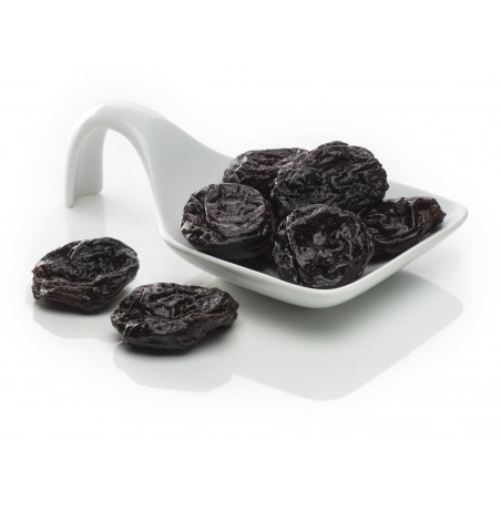 CIRUELAS PASAS SIN HUESO, BAÑADAS EN CHOCOLATE NEGRO 70% O EN CACAO EN POLVO.